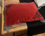 handmade sewn pillow in red velvet filled with buckwheat hull